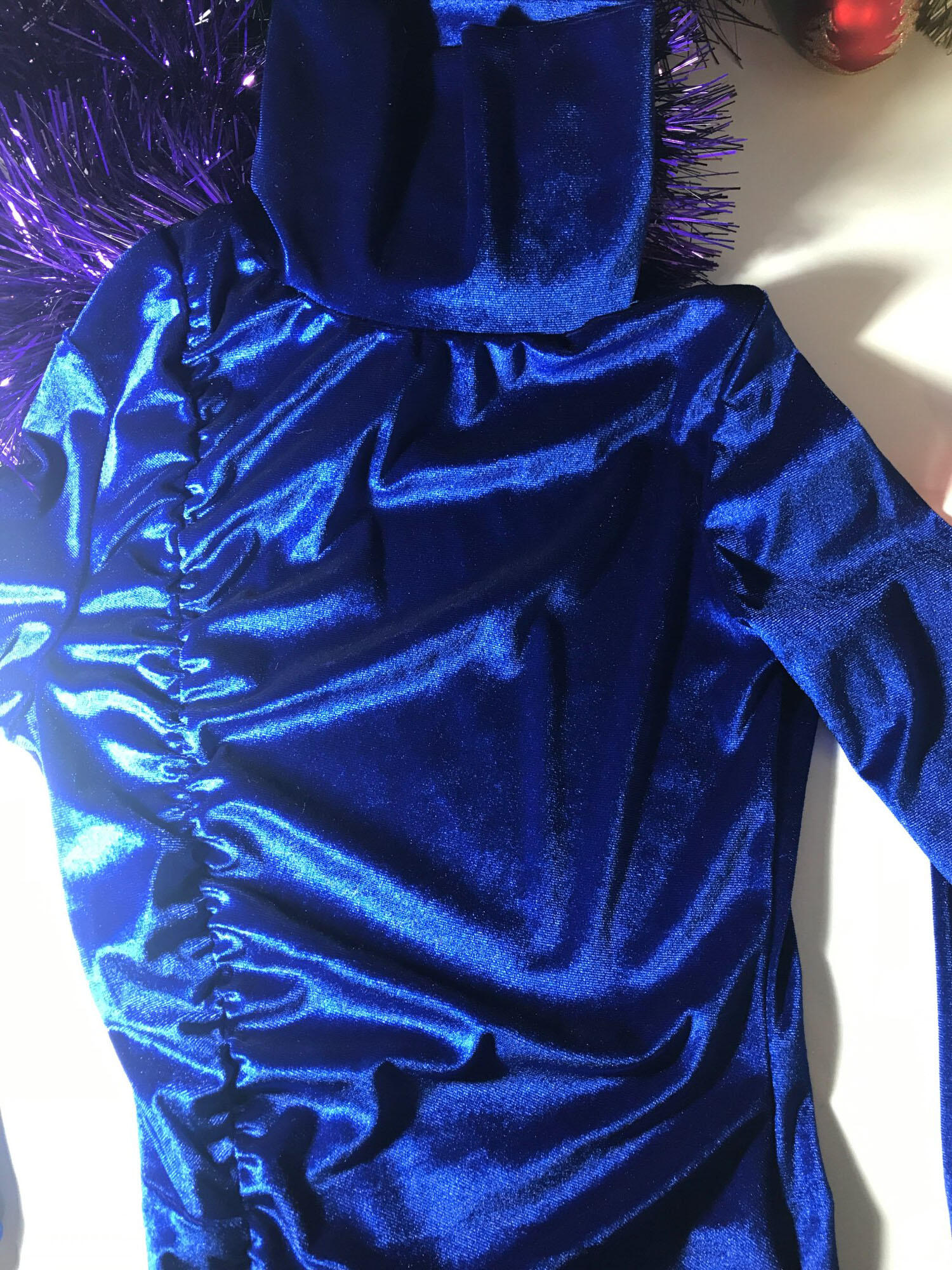 Royal Blue Velvet Long Sleeve Ruched Turtleneck Mini Dress